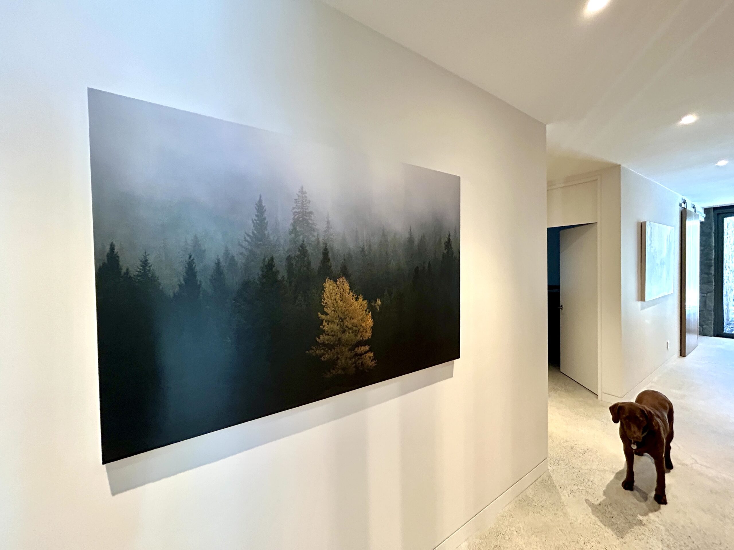 Gilmour Design Studio contacted me about having two of my large scale pieces inside one of their beautiful projects. The home is located in Whistler, B.C. and it’s stunning. I was thrilled to see these pieces in their new space, Stay Gold and Looking Glass, but obviously the real star of the show is Gracie, the adorable dog you can see in the photos. Please check out Gilmour Design Studio. Thank you for such a great opportunity Murray and Shannon.
